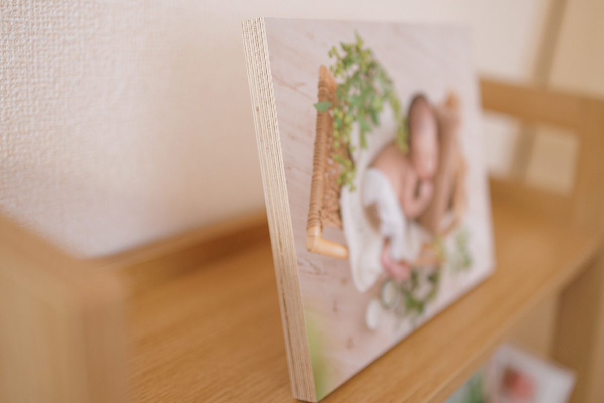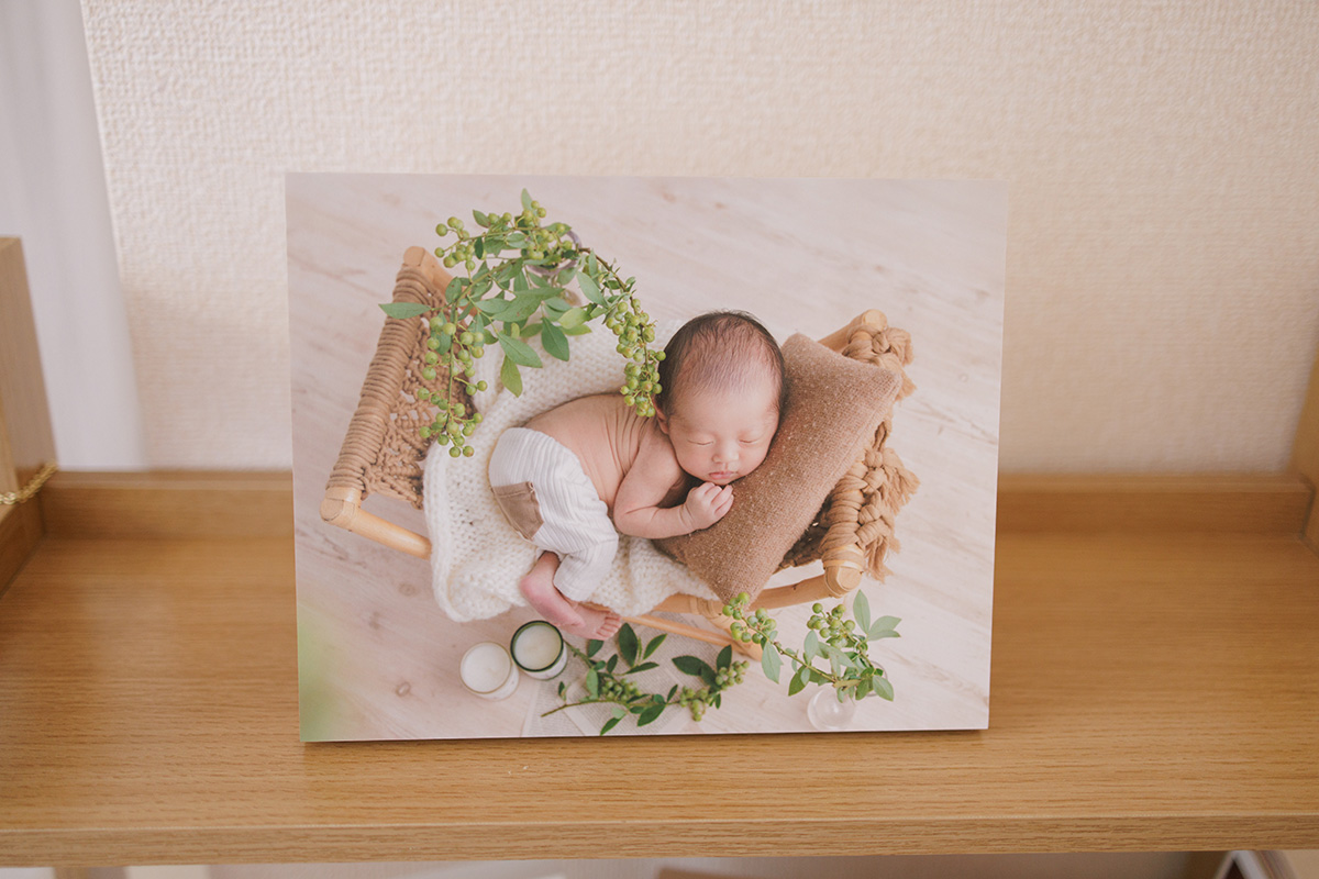 高級感あるマット仕上げのプリントアルバム。赤ちゃんの大きさそのままに残せる等身大写真と足形なども入れられます。生まれた記録をアルバムにしっかり残したいという方にお勧めです。